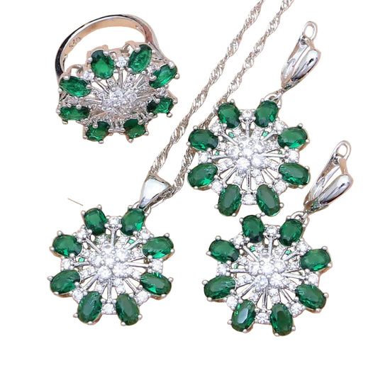 Green Zircon 925 Sterling Silver Jewelry Set