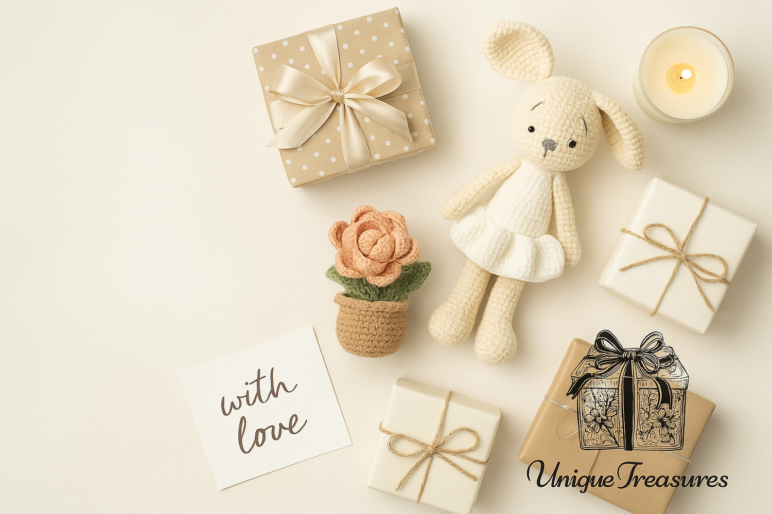 At Unique Treasures, we believe the best gifts aren’t just bought—they’re felt. That’s why every item in our collection, from our cozy handmade crochet treasures to personalized keepsakes, is chosen to do one thing: make your loved one’s eyes light up. We’re not just a shop; we’re your partner in turning ‘I care’ into ‘You’re unforgettable.